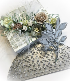 Først stanset jeg ut den herlige hjerte"bord" diesen fra La-la Land og masse grønne blader ved hjelp av diesen fra Memory Box
